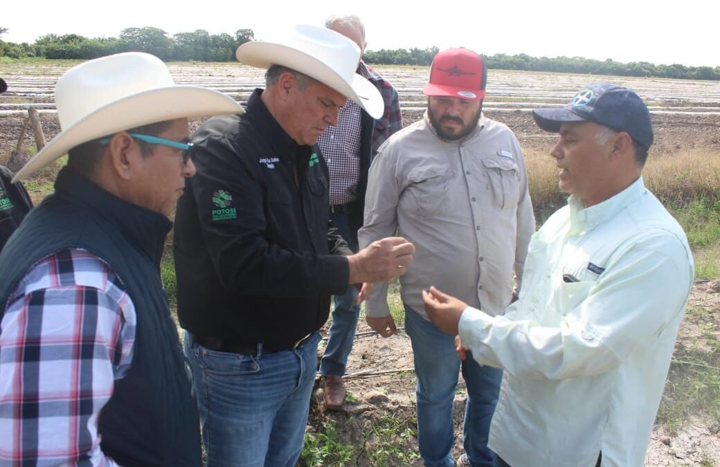 El titular de la Sedarh, Jorge Luis Díaz Salinas, informó que, por instrucción del gobernador Ricardo Gallardo Cardona de apoyar sin límites a productores, recorrió los ejidos Nuevo Ahuacatitla, Los Huastecos, San José de Limón y el rancho El Gargalote, en Tamuín, donde constató los daños ocasionados por el desbordamiento de los ríos Moctezuma y Tampaón en cultivos de papaya, sandía, melón y hortalizas, además de recabar las necesidades de los agricultores.