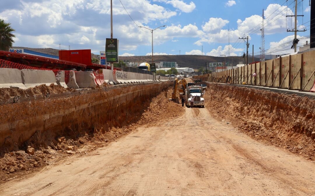 Siguiendo la instrucción del Gobernador Ricardo Gallardo Cardona de fortalecer la infraestructura vial y mejorar la movilidad, la Secretaría de Desarrollo Urbano, Vivienda y Obras Públicas (Seduvop) informó que continúan los avances en la construcción del paso a desnivel en Arena Potosí con trabajos en obras sanitarias, conformación de bases, así como cortes y excavaciones para dar forma a esta vía, como parte de un impulso sin límites para modernizar las vialidades.
