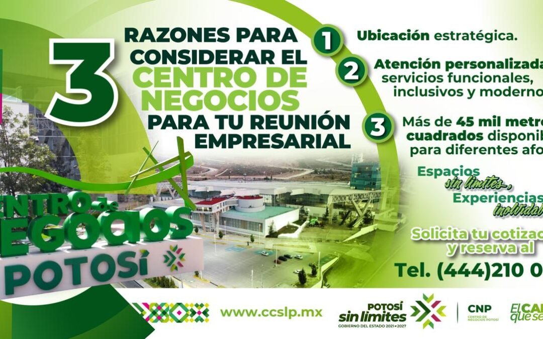 Bajo la encomienda del Gobernador Ricardo Gallardo Cardona de fortalecer la competitividad de San Luis Potosí, el Centro de Negocios Potosí (CNP) avanza como un recinto estratégico para reuniones empresariales, exposiciones y encuentros de alto nivel. Su ubicación en Circuito Potosí, cerca del Parque Tangamanga y con conexión ágil hacia la zona industrial, brinda ventajas clave para empresas locales, nacionales e internacionales.