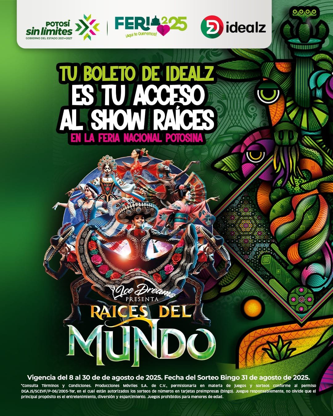 La Feria Nacional Potosina (Fenapo) 2025 sigue sorprendiendo con experiencias sin límites y este año, el boleto de participación del Sorteo Bingo de Idealz.mx no solo da la oportunidad de ganar increíbles premios, sino que también será el boleto gratuito para el espectáculo de patinaje sobre hielo “Raíces del Mundo”.