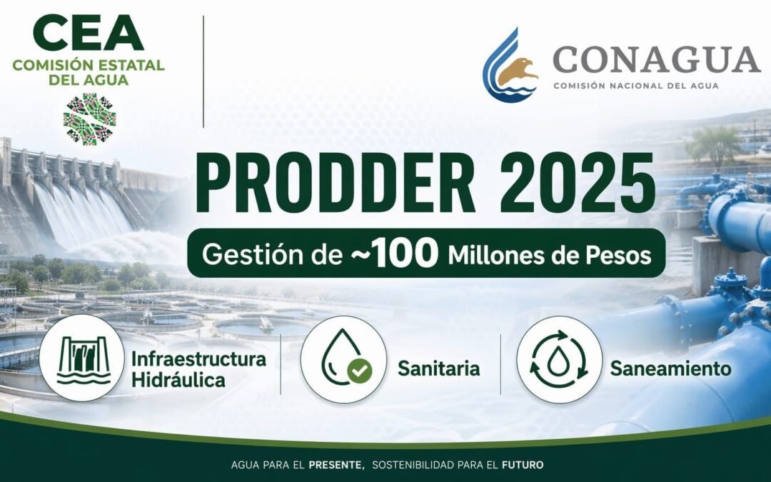 La Comisión Estatal del Agua (CEA) gestiona ante la federación, a través de la Comisión Nacional del Agua (CONAGUA), la liberación de recursos del Programa de Devolución de Derechos de Extracción (PRODDER) 2025, con el propósito de fortalecer a los organismos operadores y mejorar los servicios de agua potable, alcantarillado y saneamiento en distintos municipios.