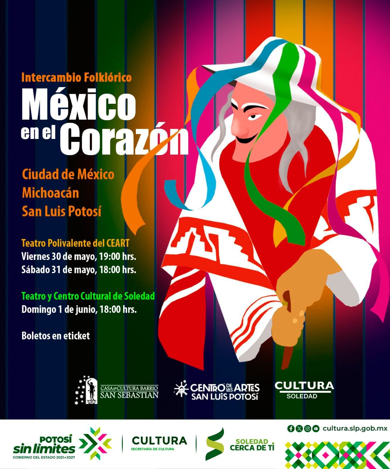 Por encomienda del Alcalde Juan Manuel Navarro Muñiz, el Ayuntamiento de Soledad de Graciano Sánchez, a través de la Dirección de Cultura Municipal, organiza y ofrece espectáculos de primer nivel a todas las familias y visitantes en el Teatro y Centro Cultural, con presentaciones gratuitas que fortalecen la vida cultural del municipio y acercan el arte escénico a las familias soledenses.