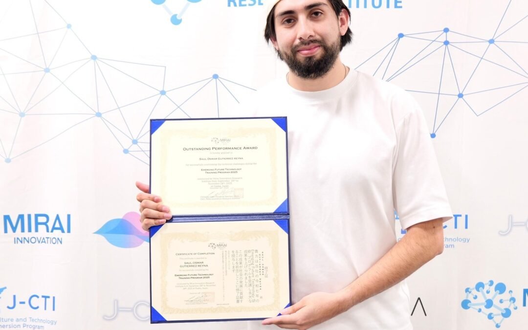 El estudiante del Doctorado en Ciencia en Ingeniería Química de la Facultad de Ciencias Químicas de la Universidad Autónoma de San Luis Potosí (UASLP), Mtro. Saúl Osmar Gutiérrez Reyna, recibió del Mirai Innovation Research Institute el reconocimiento “Desempeño sobresaliente” por un proyecto de simulación vinculado con la impresión 3D. Su participación derivó de la convocatoria impulsada por el Consejo Potosino de Ciencia y Tecnología (Copocyt), instancia que le otorgó apoyo para transporte y alojamiento.