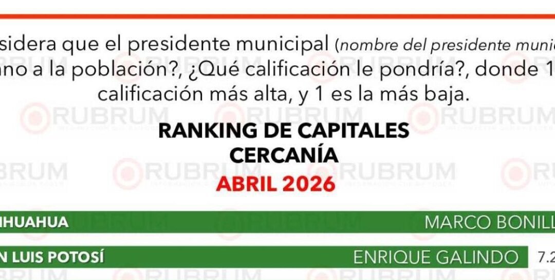 El Gobierno de la Capital se posiciona entre los mejor evaluados del país, mientras que el Alcalde Enrique Galindo Ceballos se ubica en los primeros lugares nacionales en cercanía con la población y desempeño, de acuerdo con la más reciente medición de la encuestadora Rubrum correspondiente a abril.
