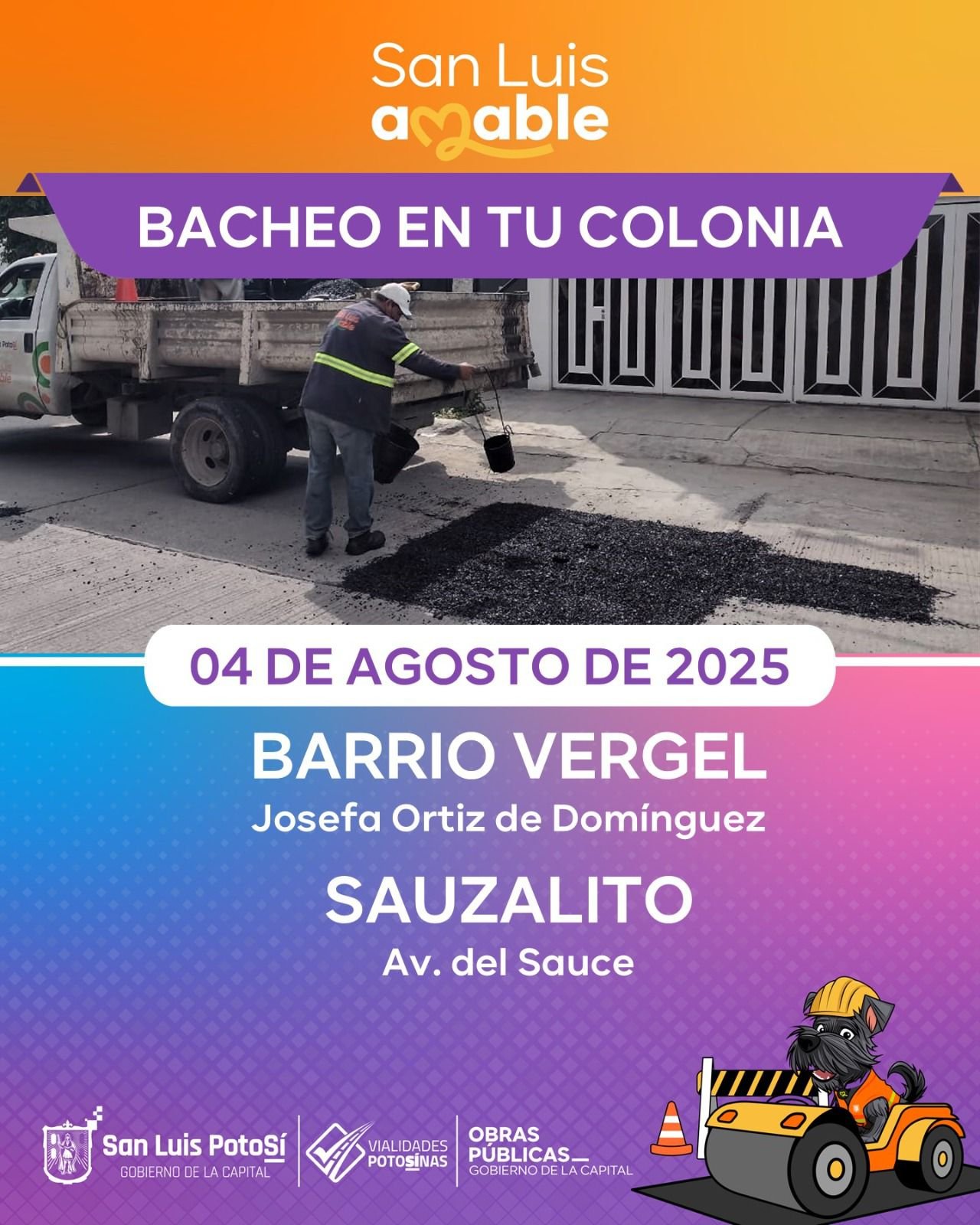 El Gobierno Municipal agradece la comprensión de la ciudadanía ante los trabajos en proceso y reitera que cada acción tiene como objetivo cuidar las vialidades de San Luis Potosí y proteger a quienes las transitan. Seguiremos trabajando, con cercanía y compromiso, por una Capital en movimiento.