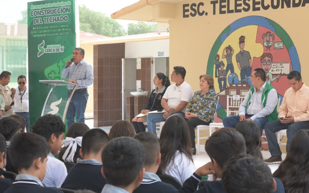 El comienzo de la construcción del nuevo techado escolar en la telesecundaria “Julián Carrillo”, responde a una solicitud añeja de madres, padres y docentes de Fracción Rivera en Soledad de Graciano Sánchez, quienes hoy reconocen que sus hijas e hijos contarán por fin con un espacio digno, seguro y funcional para sus actividades escolares, sin que ello represente un gasto para sus familias; su agradecimiento al Alcalde Juan Manuel Navarro Muñiz, es por el paso firme para mejorar las condiciones de aprendizaje y desarrollo físico, cultural y comunitario de más de 200 alumnos.