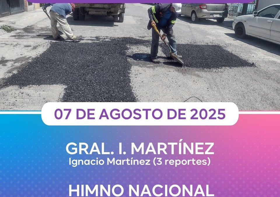 - La Dirección de Obras Públicas continúa con labores preventivas y de respuesta inmediata: se reparó una rejilla en Eje 104 de la Zona Industrial; se atienden 37 reportes de bacheo emergente en distintas colonias; y avanzan las obras de accesibilidad en oficialías del Registro Civil.