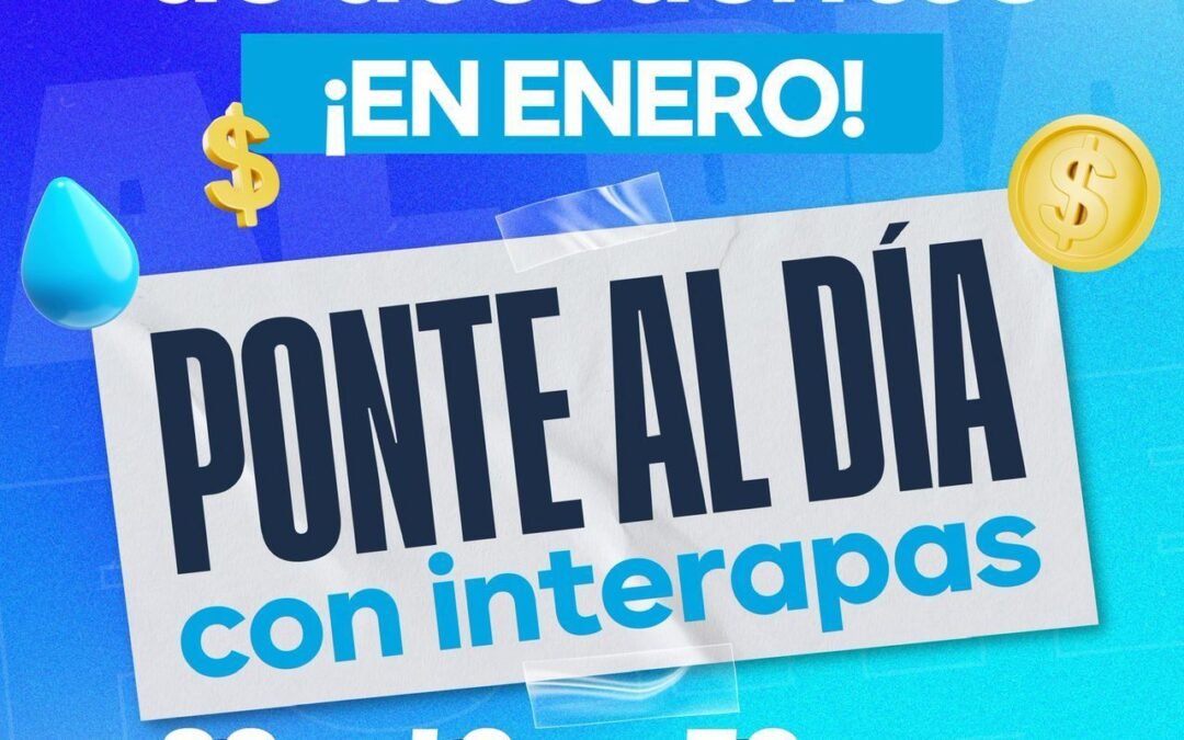 SLP.- El Organismo Operador de Agua Potable, Alcantarillado y Saneamiento (INTERAPAS) anuncia el lanzamiento del programa “Ponte al día con INTERAPAS”, dirigido a usuarios domésticos, comerciales y, por primera vez, a usuarios industriales.