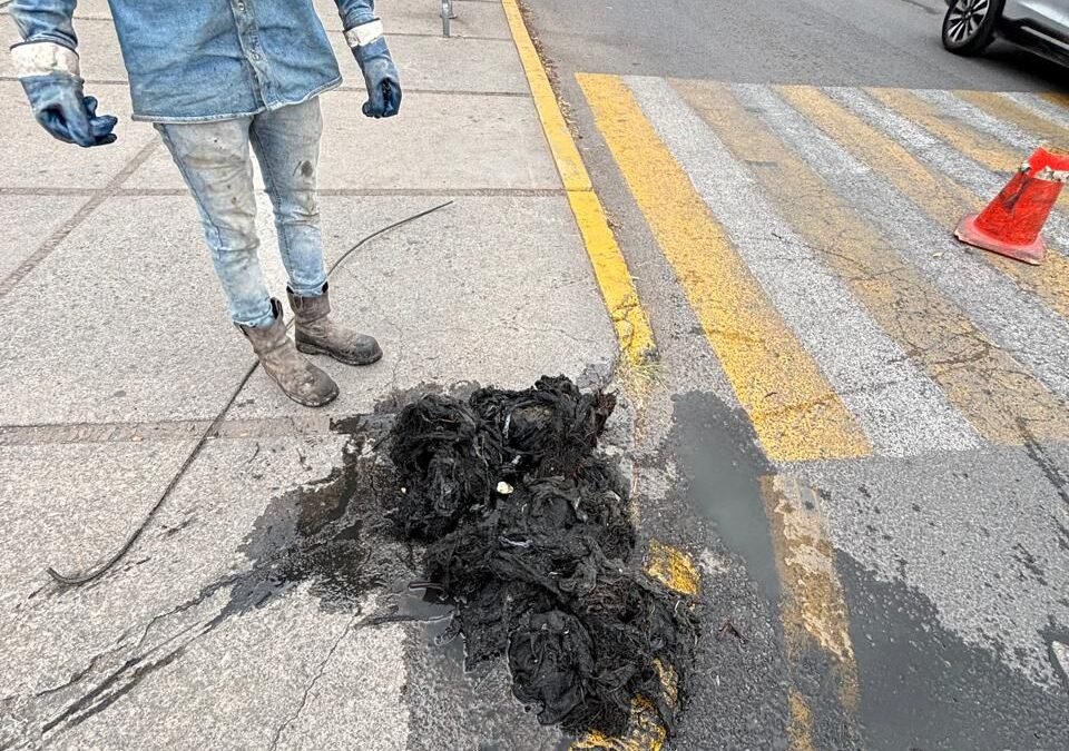 Cuadrillas del retiraron una cantidad considerable de residuos sólidos que impedían el flujo adecuado en las líneas sanitarias, lo que había generado el brote de agua residual en la zona. Con el uso de equipo especializado, se liberó la red y se restableció su funcionamiento.