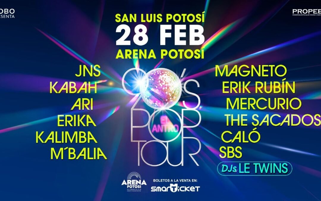 Gracias al clima de paz y estabilidad que genera el Gobierno del Estado de San Luis Potosí, las y los potosinos hoy disfrutan sin límites de eventos de gran calidad. Bajo este ambiente positivo, el concepto encabezado por Ari Borovoy inicia una nueva etapa con una explosiva mezcla de pop y reguetón, la gira «Los 90’s Pop Tour: El Antro» llegará el próximo 28 de febrero para transformar la majestuosa Arena Potosí.