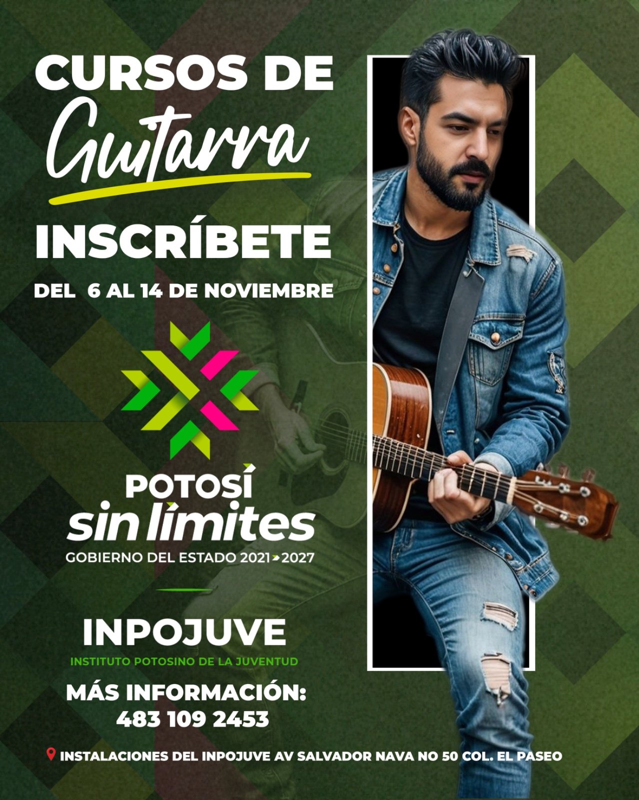 El Instituto Potosino de la Juventud (Inpojuve), mantiene abierta la convocatoria hasta el 14 de noviembre para el curso de guitarra dirigido a niñas, niños y jóvenes potosinos, que busca fortalecer las habilidades artísticas y promover la expresión musical en las juventudes.