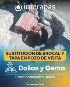 Interapas renueva pozos de visita para mayor seguridad en la colonia Dalias