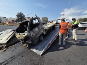 Una camioneta de traslado de residuos proveniente de León, Guanajuato, sufrió un accidente sin que se reporten lesionados....