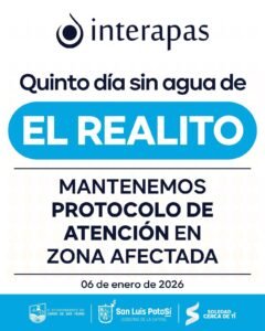 INTERAPAS mantiene activo su protocolo de atención. SLP.- En el quinto día sin suministro del sistema “El Realito”,...