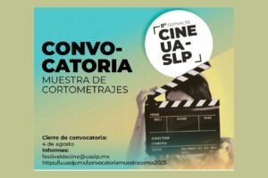 La Universidad Autónoma de San Luis Potosí (UASLP), a través de la Secretaría de Difusión Cultural, invita a realizadoras y realizadores potosinos a participar en la quinta Muestra de Cortometrajes