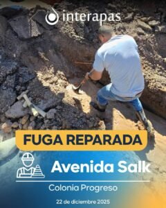 Interapas detecta y repara fuga no visible en avenida Salk