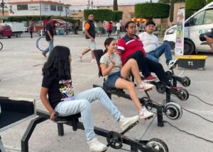 - Adultos, jóvenes y niños participaron en la función de cine al aire libre con bicicletas generadoras de energía, en...