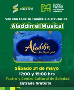 ESTE FIN DE SEMANA, ALADDÍN EL MUSICAL Y “MÉXICO EN EL CORAZÓN” EN EL TEATRO Y CENTRO CULTURAL DE SOLEDAD