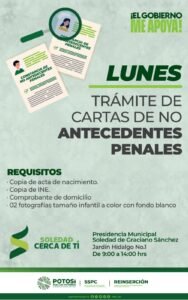 ¡TRAMITA TU CARTA DE NO ANTECEDENTES PENALES, ESTE LUNES, EN SOLEDAD!