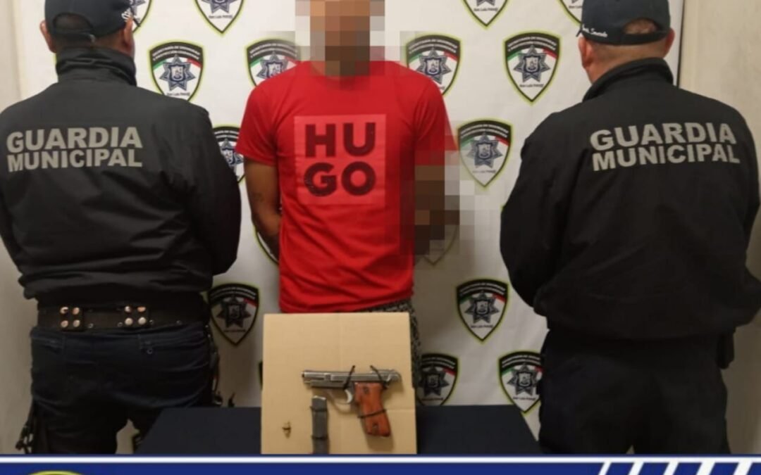 En seguimiento a la flagrancia del delito, los agentes municipales implementaron un dispositivo de búsqueda que permitió ubicar al implicado en calles del cuadrante norte, donde fue asegurado y se le decomisó un arma de fuego tipo escuadra.