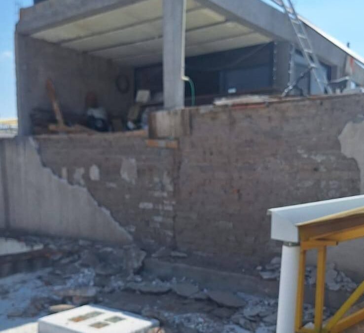 Personal del área de Construcción de esta dependencia realizó una inspección estructural tanto en el inmueble reportado como en el techo del centro de atención infantil, ya que parte del material desprendido cayó sobre sus instalaciones. Como medida preventiva, se delimitaron con cinta restrictiva las áreas comunes afectadas, con el fin de mitigar cualquier riesgo para los menores y el personal.