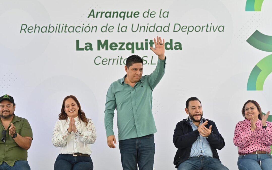 El Gobernador de San Luis Potosí, Ricardo Gallardo Cardona, arrancó en Cerritos la rehabilitación de la Unidad Deportiva “La Mezquitada”, que fortalecerá sin límites el apoyo al talento deportivo local con canchas, juegos infantiles, pista de atletismo e infraestructura parecida a la de los parques Tangamanga.