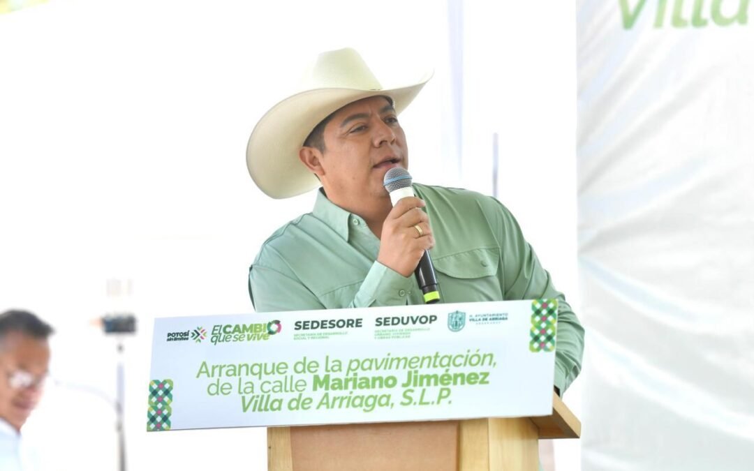Ricardo Gallardo Cardona, Gobernador de San Luis Potosí, entregó en Villa de Arriaga los trabajos de concreto hidráulico que se implementaron en la calle Privada del Estanque de la cabecera municipal; de igual forma, arrancó la pavimentación de la calle Mariano Jiménez de la localidad de Gonzaga e inició la rehabilitación y modernización de la plaza principal del municipio, acciones que beneficiarán a más de 15 mil habitantes con más desarrollo social y la adecuación de espacios públicos, además de promover la actividad física y de esparcimiento entre niñas, niños y jóvenes.