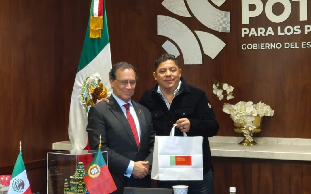 El Gobernador de San Luis Potosí Ricardo Gallardo Cardona, sostuvo un encuentro con el embajador de Portugal en México Manuel Carvalho, con quien dialogó sobre las fortalezas económicas, culturales y turísticas que posicionan al Estado como uno de los destinos más atractivos para la inversión extranjera.