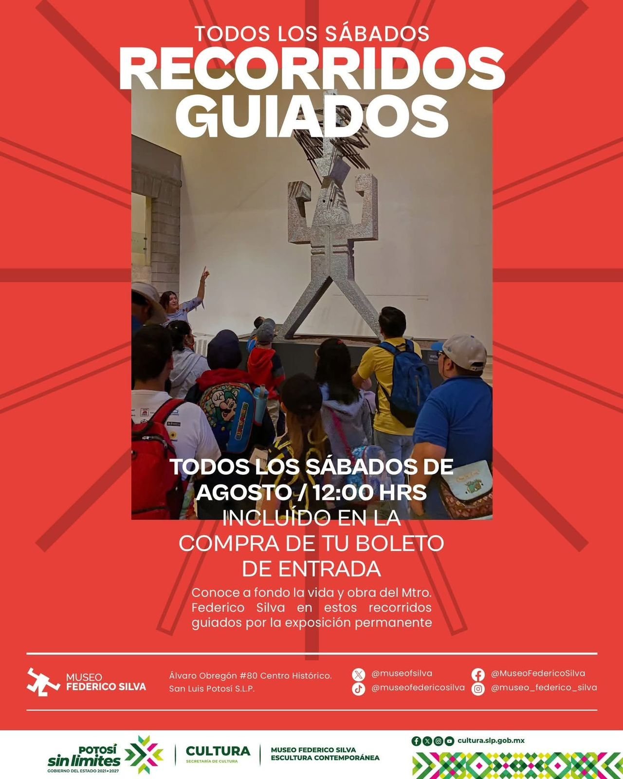 Gracias al clima de paz y estabilidad que genera el Gobierno del Estado de San Luis Potosí, así como la amplia agenda cultural, recreativa y artística que prepara cada fin de semana, agosto arranca con diversas actividades para el disfrute sin límites de todas las familias. Museos, plazas, pueblos mágicos y parajes naturales serán protagonistas de experiencias únicas para quienes buscan cultura, naturaleza, arte y diversión en cada rincón del Estado.