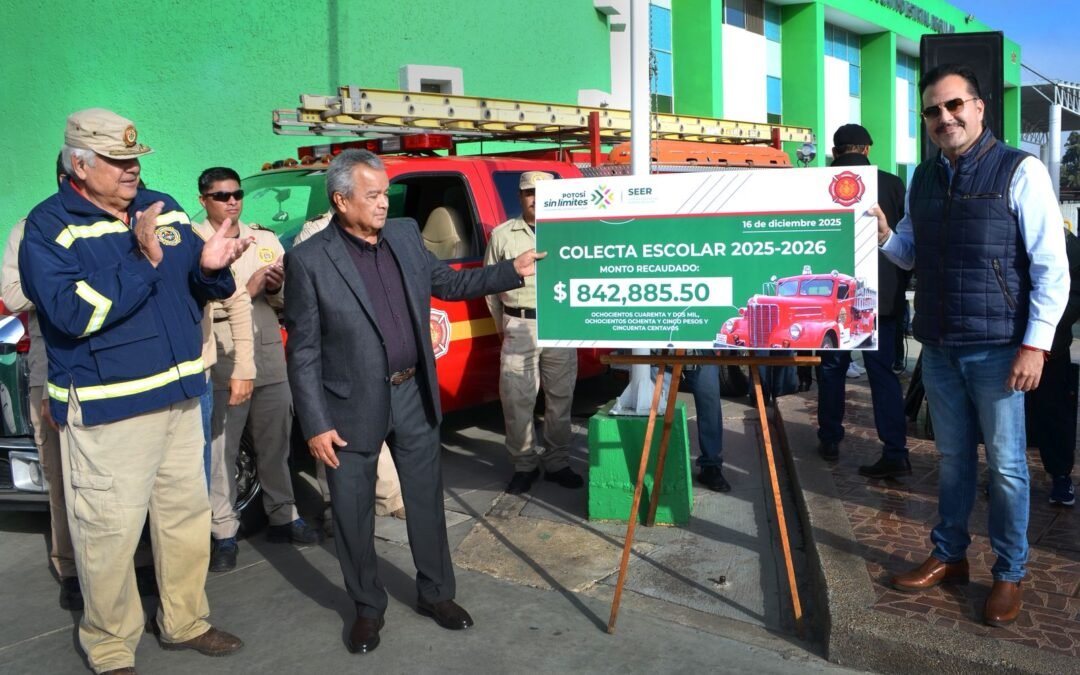 El Sistema Educativo Estatal Regular (SEER) refrendó su compromiso social con la entrega de más de 842 mil pesos en apoyo al Heroico Cuerpo de Bomberos como parte de la Colecta Escolar 2025–2026, resultado de la participación responsable de directivos, personal administrativo, docentes, alumnas y alumnos de diversas instituciones educativas.